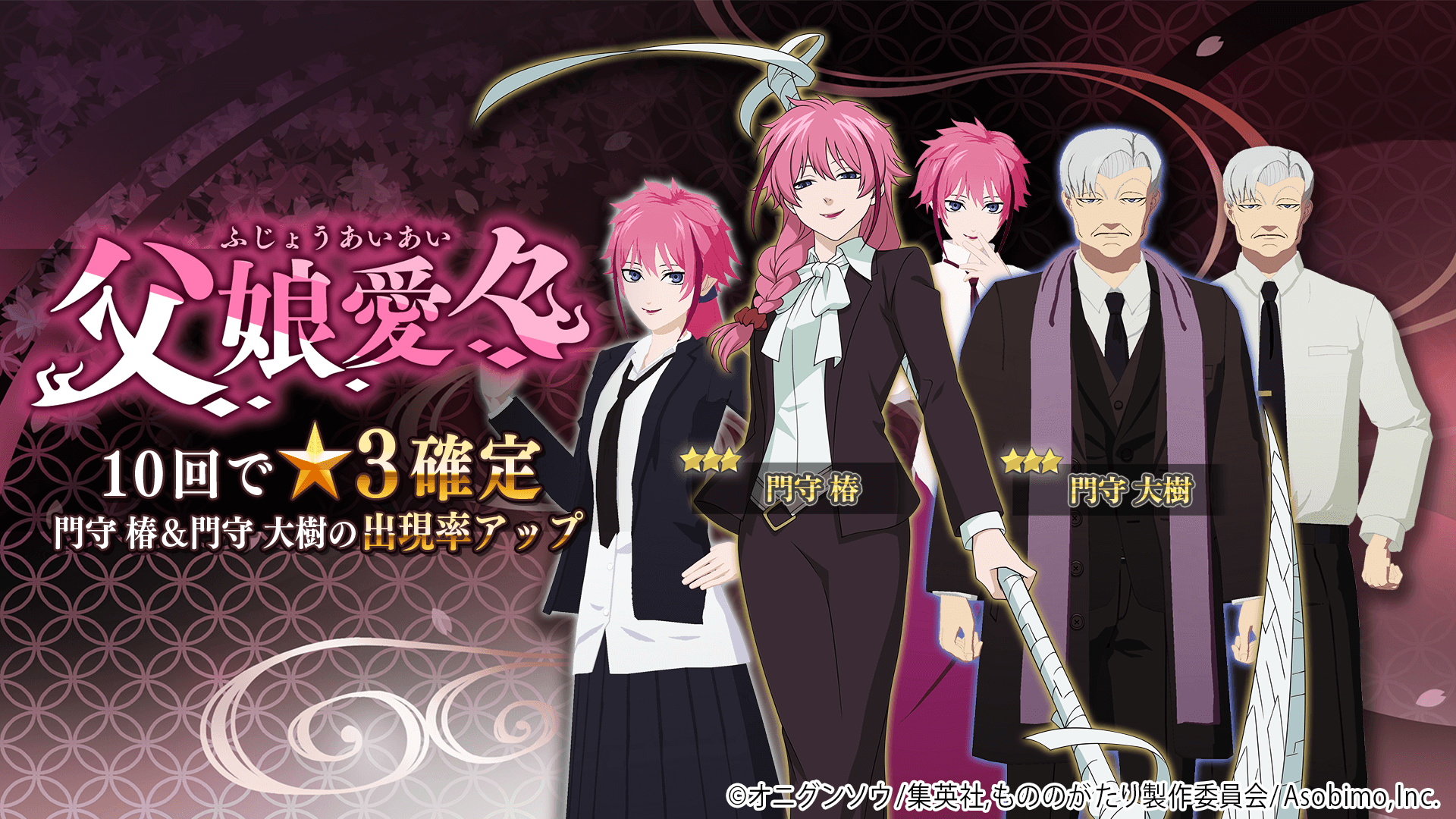 ピックアップ期間中は、キャラクター★3「門守 椿」、★3「門守 大樹」の提供割合がアップしています。