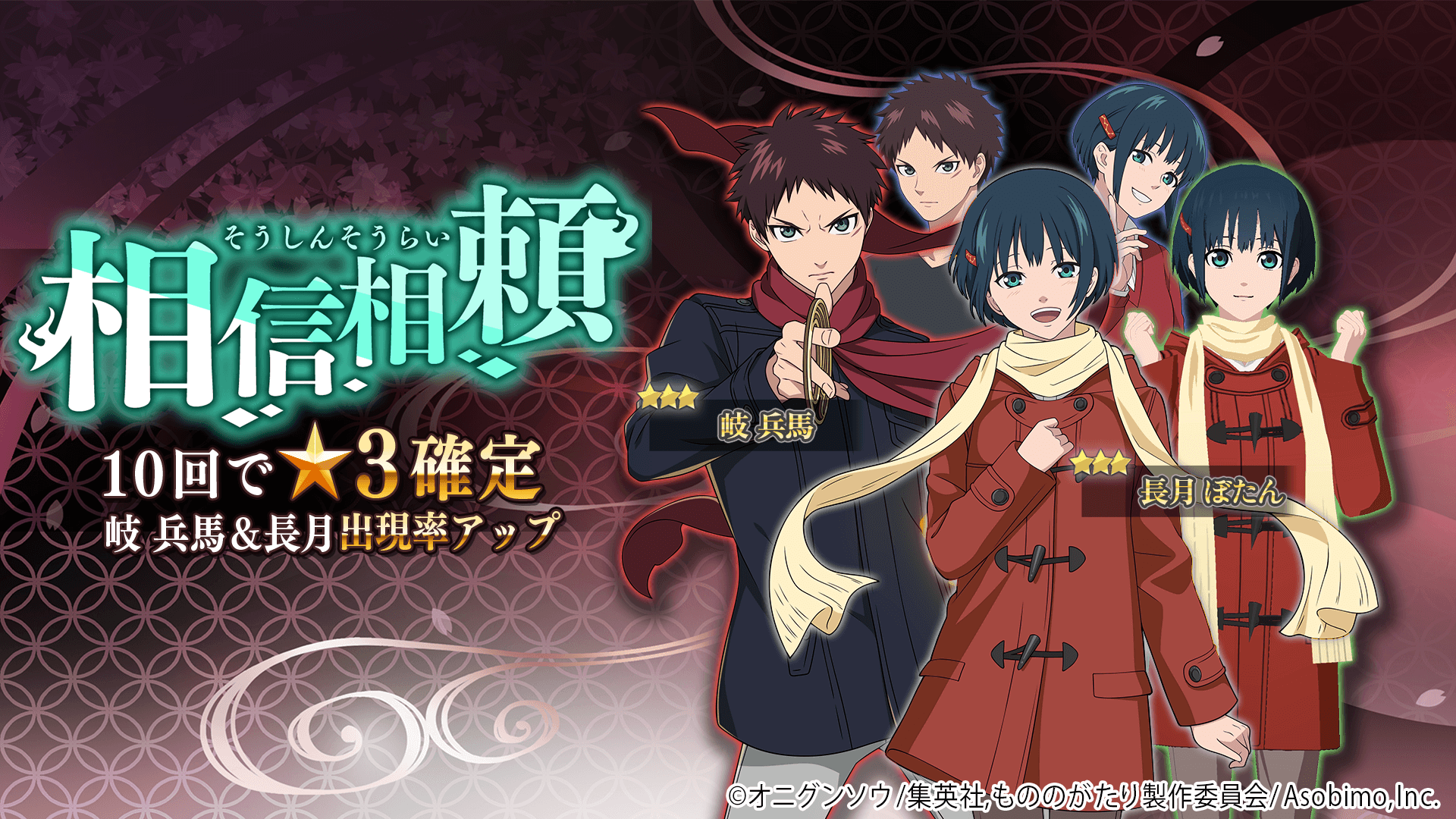 ピックアップ期間中は、キャラクター★3「岐 兵馬」、★3「長月 ぼたん」の提供割合がアップしています。