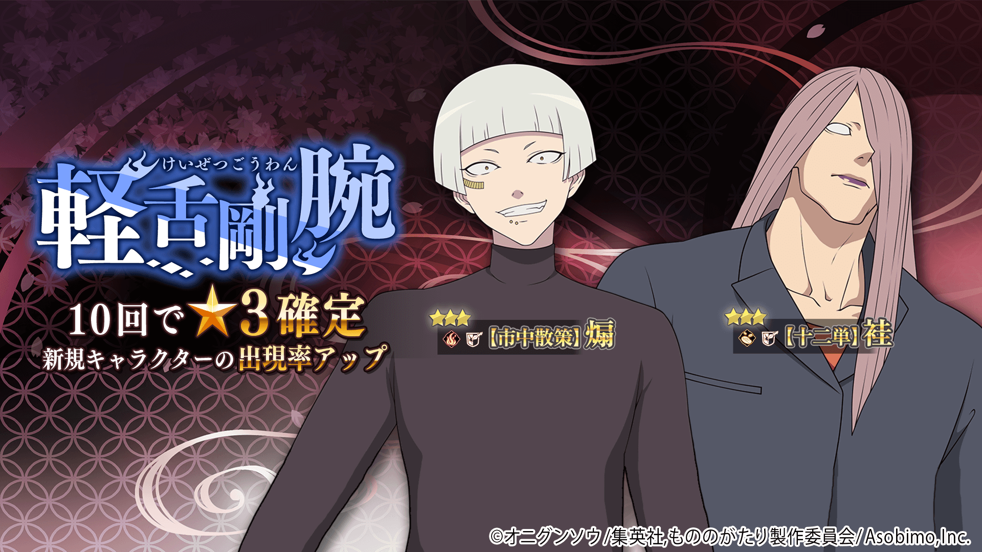 ピックアップ期間中は、新規キャラクター「【市中散策】煽」「【十二単】袿」の提供割合がアップしています。