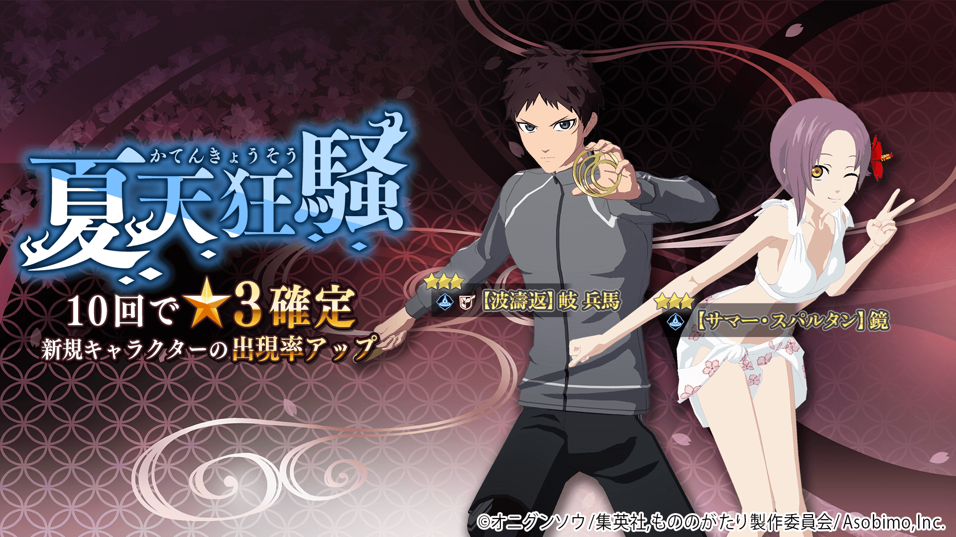 ピックアップ期間中は、期間限定キャラクター「【波濤返】岐 兵馬」「【サマー・スパルタン】鏡」の提供割合がアップしています。